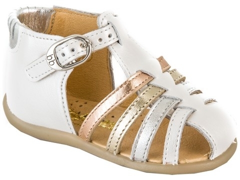 GUPPY, nu-pieds montant, embout fermé, cuir de chez BABYBOTTE Extérieur en cuir blanc et or et doublure intérieur en cuir. Embout fermé pour plus de sécurité. Semelle intérieure en cuir avec soutien plantaire Contrefort renforcé pour un maintien supérieur. Niveau de marche: En apprentissage et/ou acquise. Nu-pieds montant à embout fermé pour bébé BABYBOTTE est un fabriquant Français de qualité depuis 1949, Ils sont reconnus pour leur savoir faire et les innovations qu'ils apportent dans le monde de la chaussure pour enfants. L'été... le soleil, les petits doigts de pieds à l'air, pour rester toujours au frais. Un délice de design, de couleurs estivales et de savoir faire pour accompagner votre bébé durant cet été. Mais aussi la sécurité avec l'embout fermé pour profiter au maximum de cet été. PASAPAS vous conseille: prenez la pointure normale
