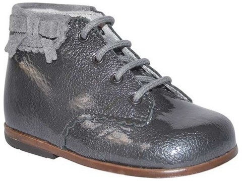 CHAUSSURE à LACET pour Bébés FILLES , Modèle OLEA de la marque Française LITTLE MARY.coloris CUIR VERNIS GRIS Nous recommandons ce bottillon pour les "PREMIERS PAS" BOTTILLON CLASSIQUE , idéal pour les CÉRÉMONIES Le bottillon est réalisé en cuir , dessus et intérieur La semelle extérieure est fine , souple et anti dérapante. Le bottillon OLEA de LITTLE MARY est réhaussé par un COL et un NOEUD en cuir velours en haut de tige . CHAUSSANT:OLEA chausse normalement, nous vous recommandons de conserver la pointure habituelle